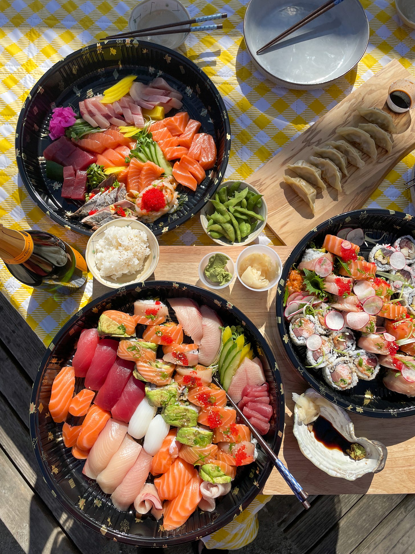 They give SO much food. Each individual sashimi slice is thiccccc and the rolls are honestly too big for just any ordinary chopstick holder to handle. Also, they threw in sushi rice for free when I asked, and edamame and chicken-cabbage gyoza come complimentary (as if you didn’t already have enough food). Moreover, it tastes great—the fish is fresh and high quality (just LOOK at the striation on the yellowtail). Best of all? It’s reasonably priced for the quality that you’re getting. You’ll definitely have enough to both eat and be merry.